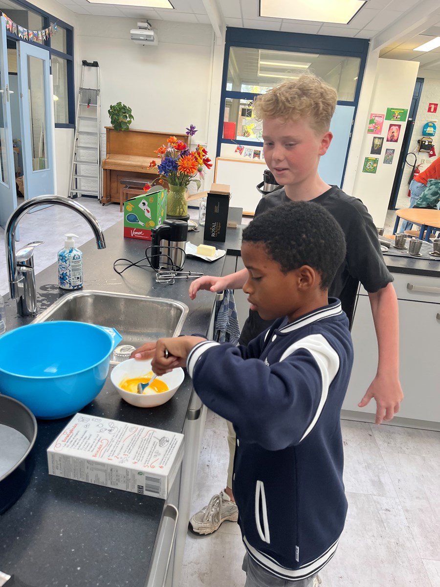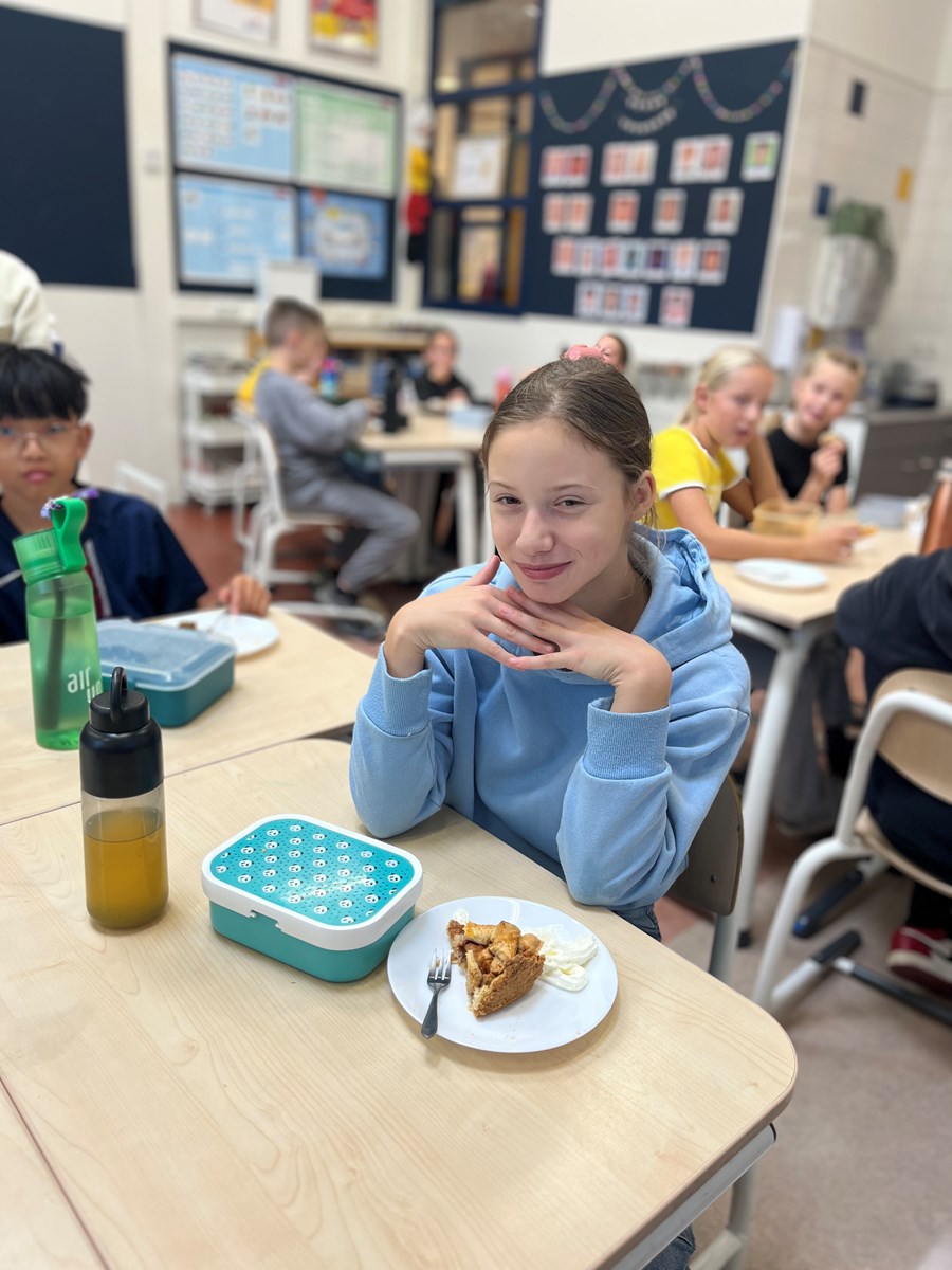 Vorige week mochten we in het Zuiderzeemuseum appels plukken. Vandaag hebben Tygo en Ray samen appeltaart gebakken voor de hele klas. We hebben er heerlijk van gesmuld met elkaar😍.