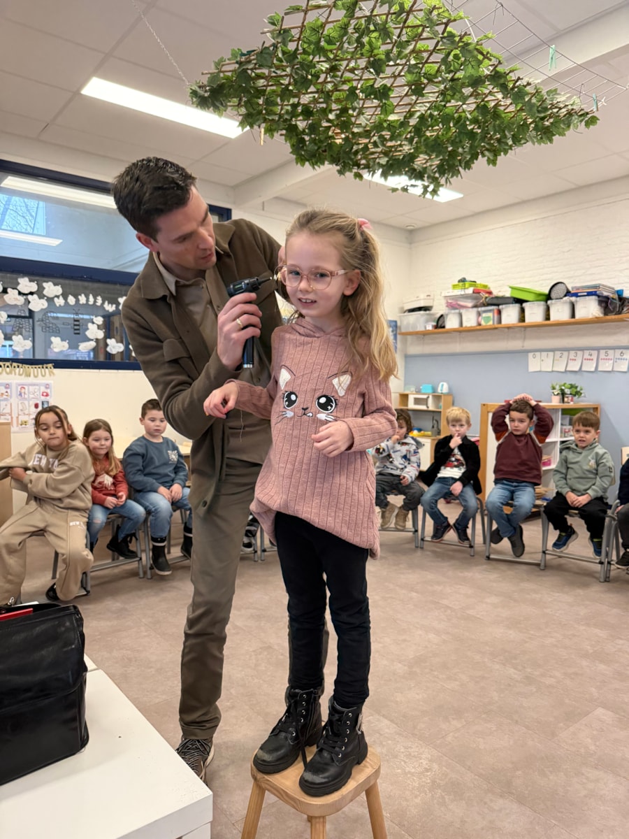 Een aantal kinderen mocht zich zelfs even laten “onderzoeken” en anderen mochten de spulletjes voorzichtig uitproberen. Dat was natuurlijk extra spannend én leerzaam. We hebben veel nieuwe dingen ontdekt en er werd volop enthousiast meegedaan 🙌