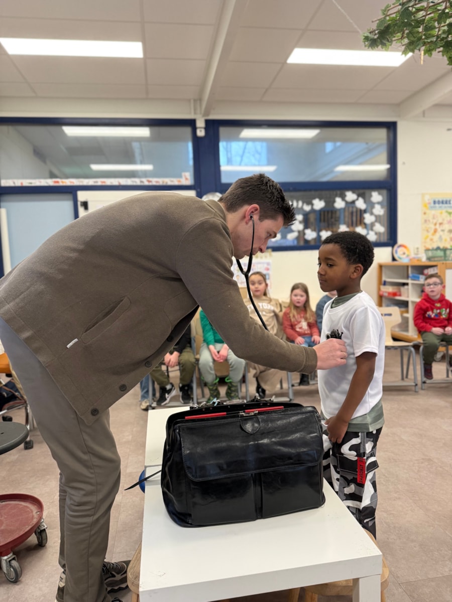 Afgelopen donderdag kregen wij een bijzonder bezoek in de groep: een echte huisarts! Hij had een echte dokterstas meegenomen en heeft de kinderen van alles laten zien en uitgelegd. Samen hebben we gekeken naar verschillende instrumenten en geleerd waar ze voor gebruikt worden 🩺
