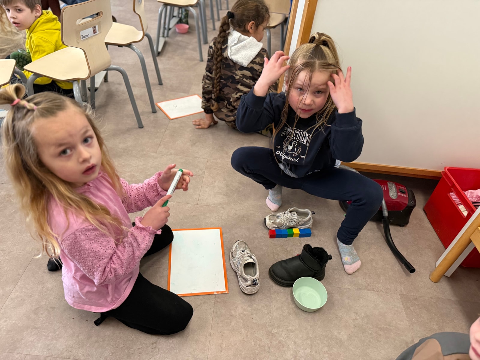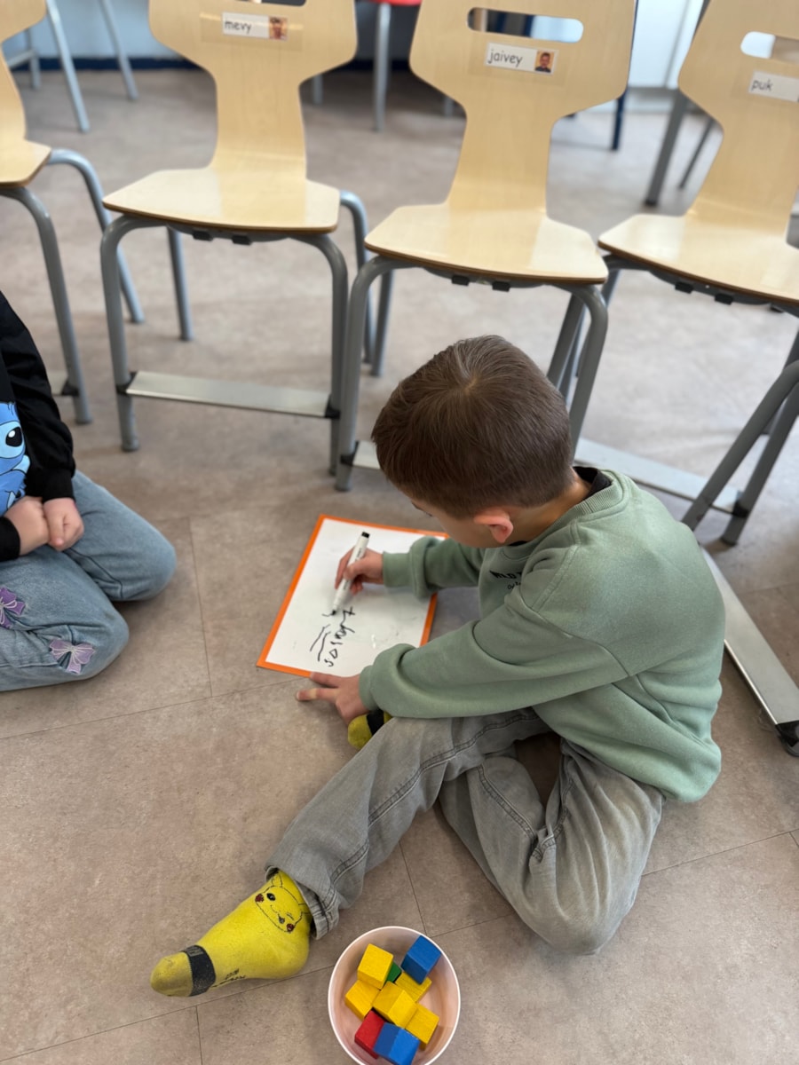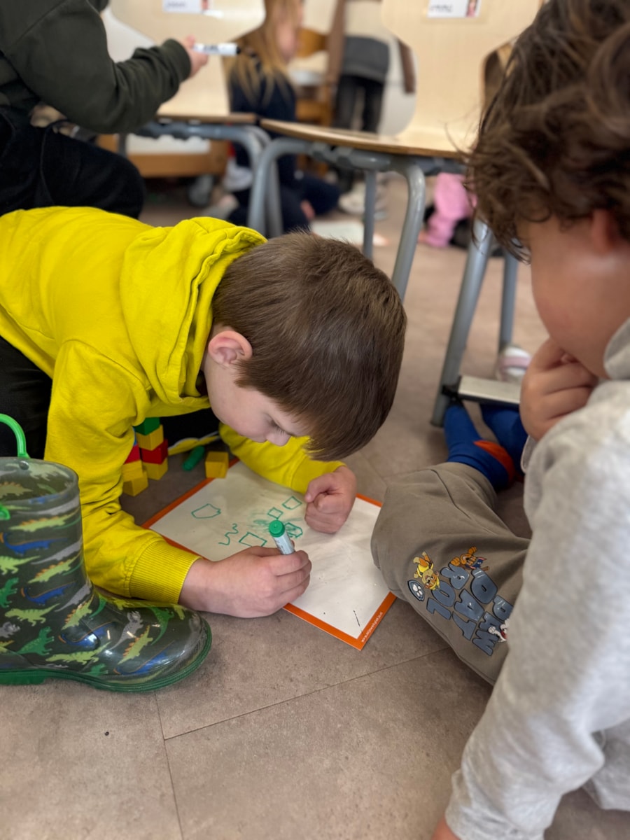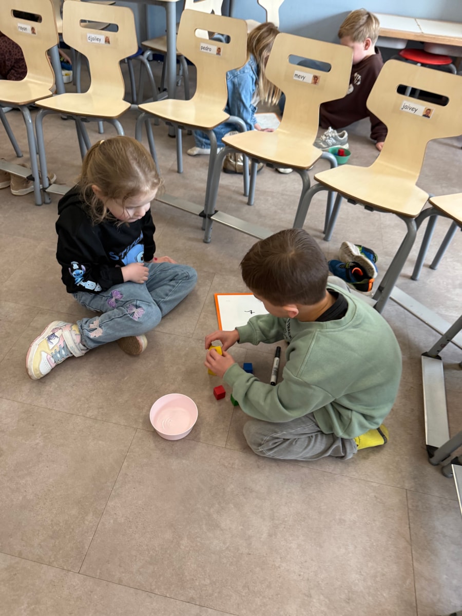Vanmorgen zijn we gestart met een nieuwe inloop, waarbij de kinderen in kleurgroepjes aan het werk gingen. Daarnaast hebben we geoefend met meten aan de hand van blokjes. De kinderen hebben verschillende lengtes met elkaar vergeleken en hun bevindingen in tweetallen opgeschreven.