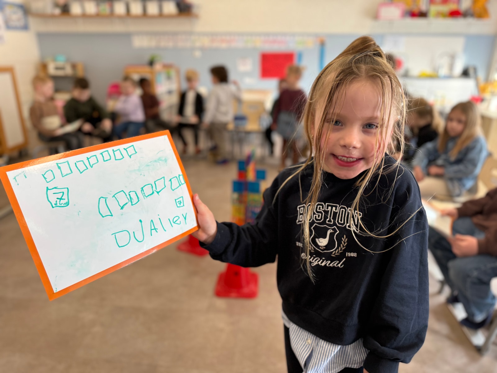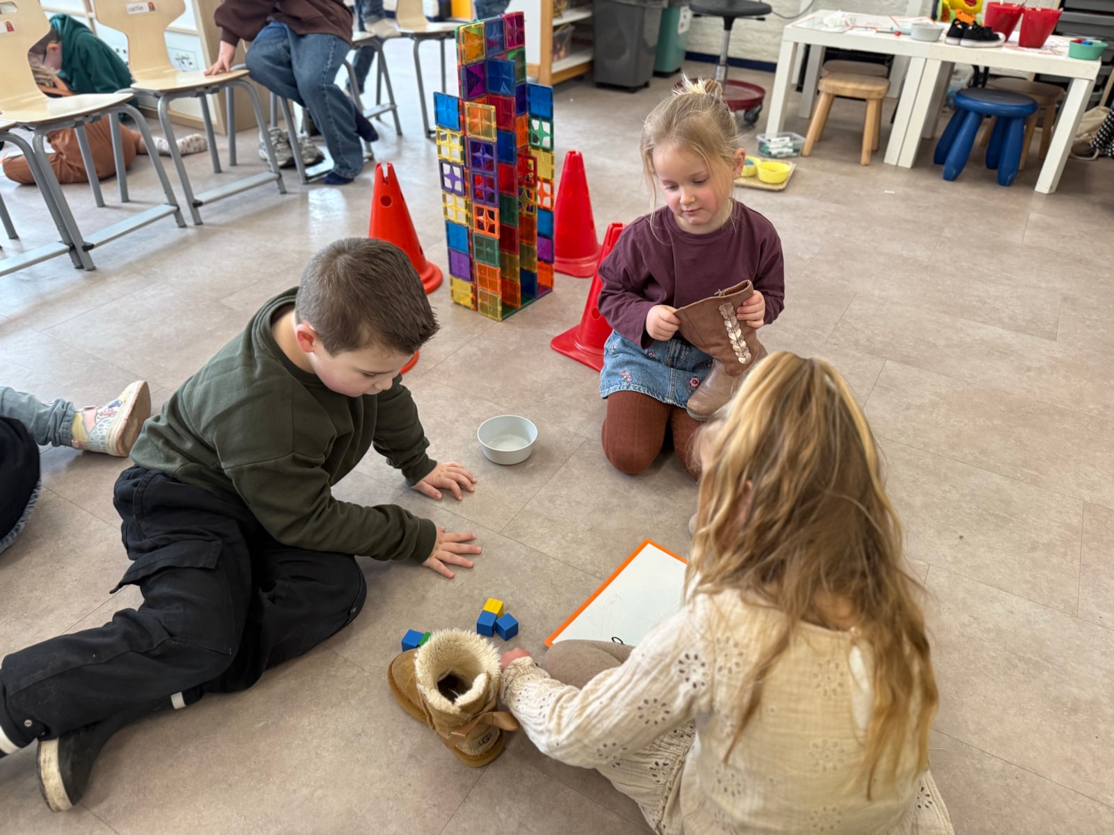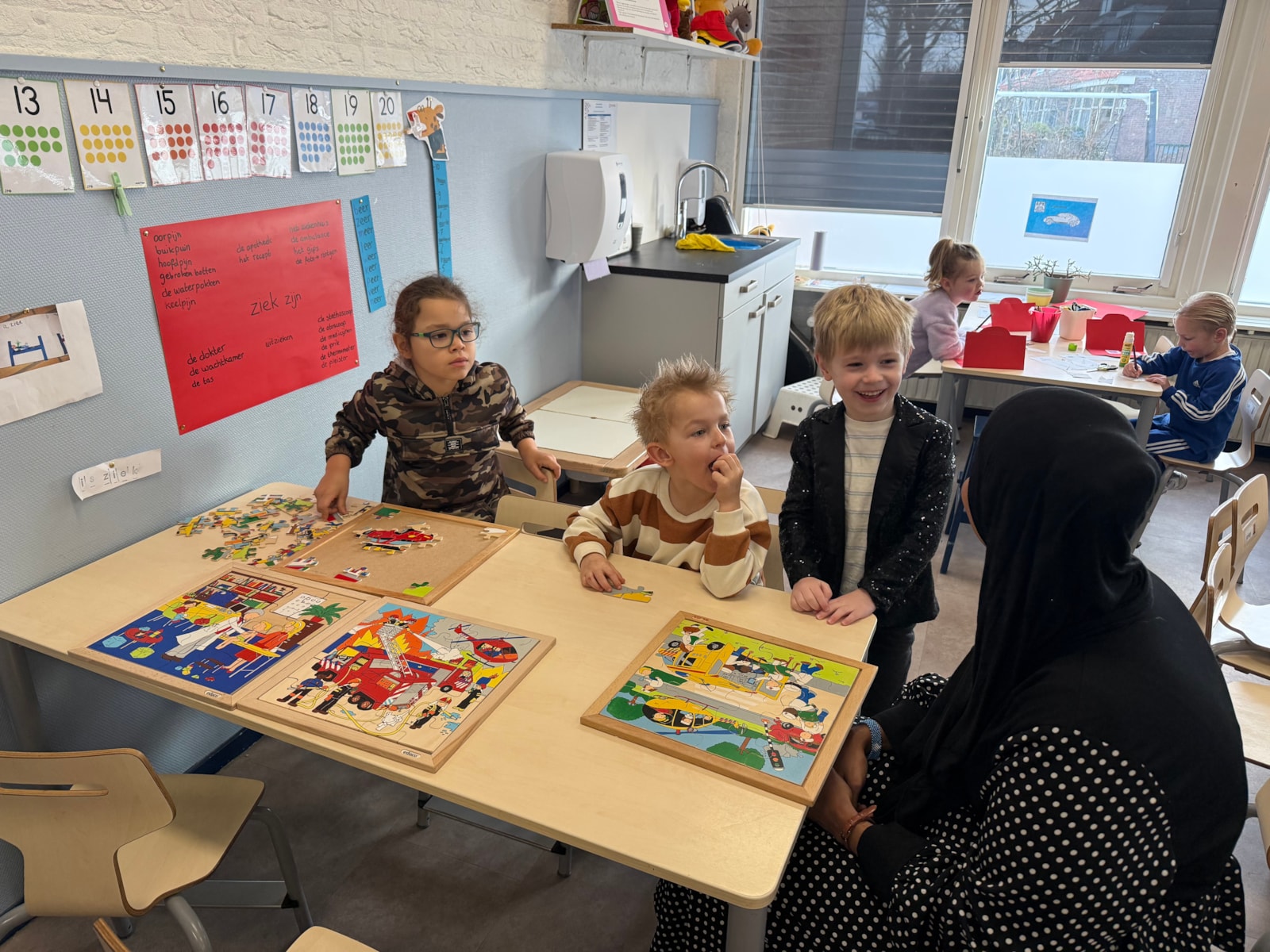 Vanmorgen zijn we gestart met een nieuwe inloop, waarbij de kinderen in kleurgroepjes aan het werk gingen. Daarnaast hebben we geoefend met meten aan de hand van blokjes. De kinderen hebben verschillende lengtes met elkaar vergeleken en hun bevindingen in tweetallen opgeschreven.