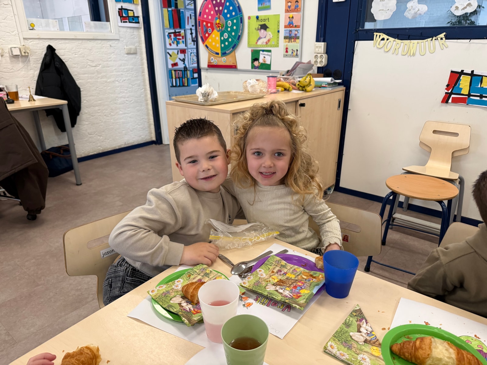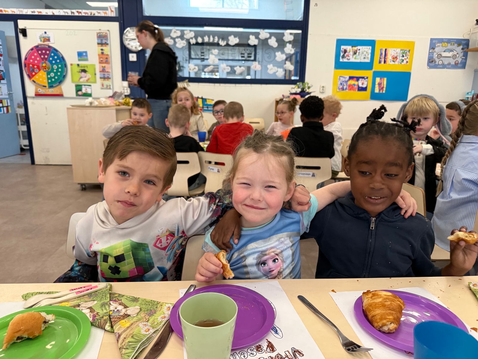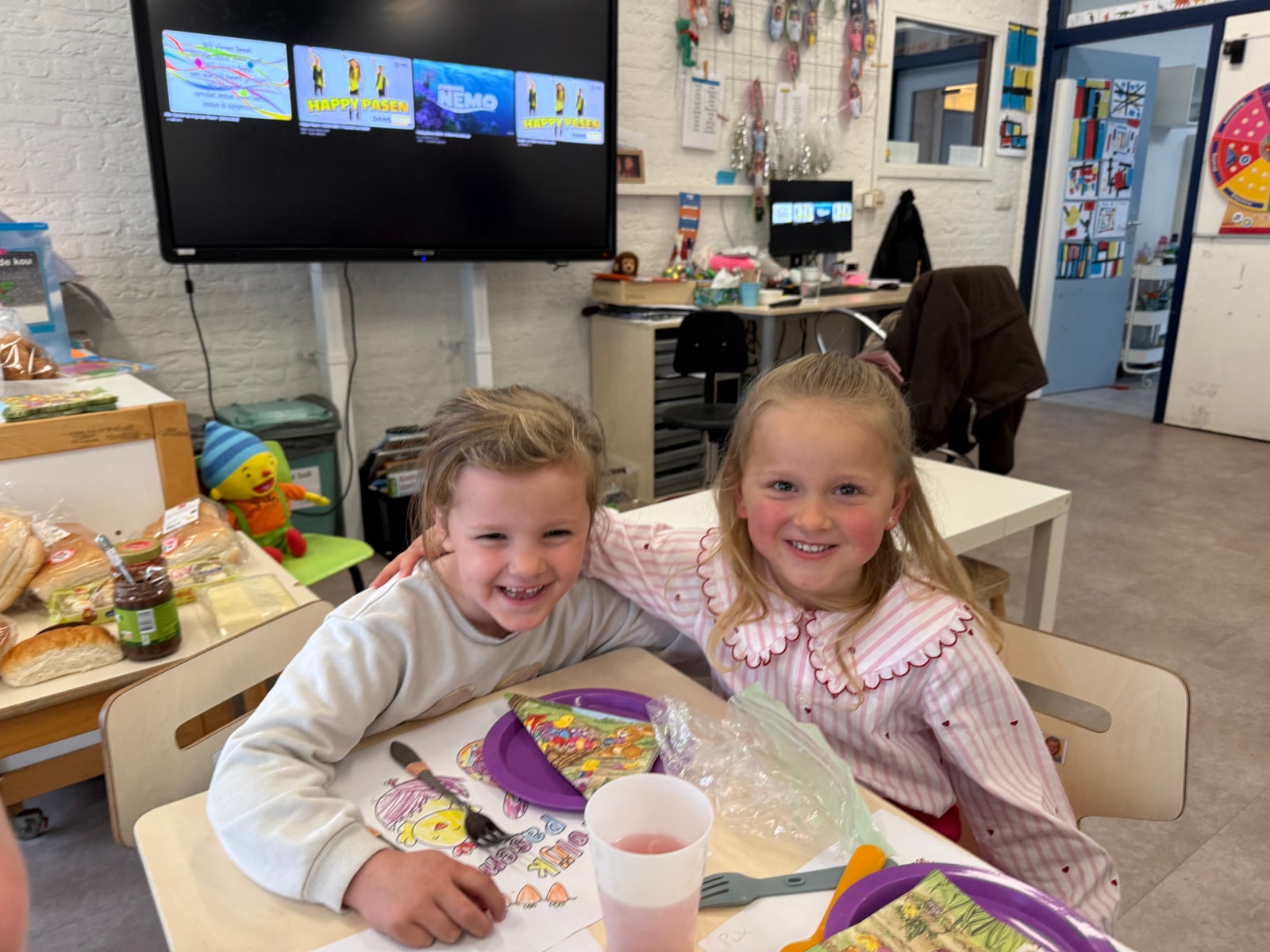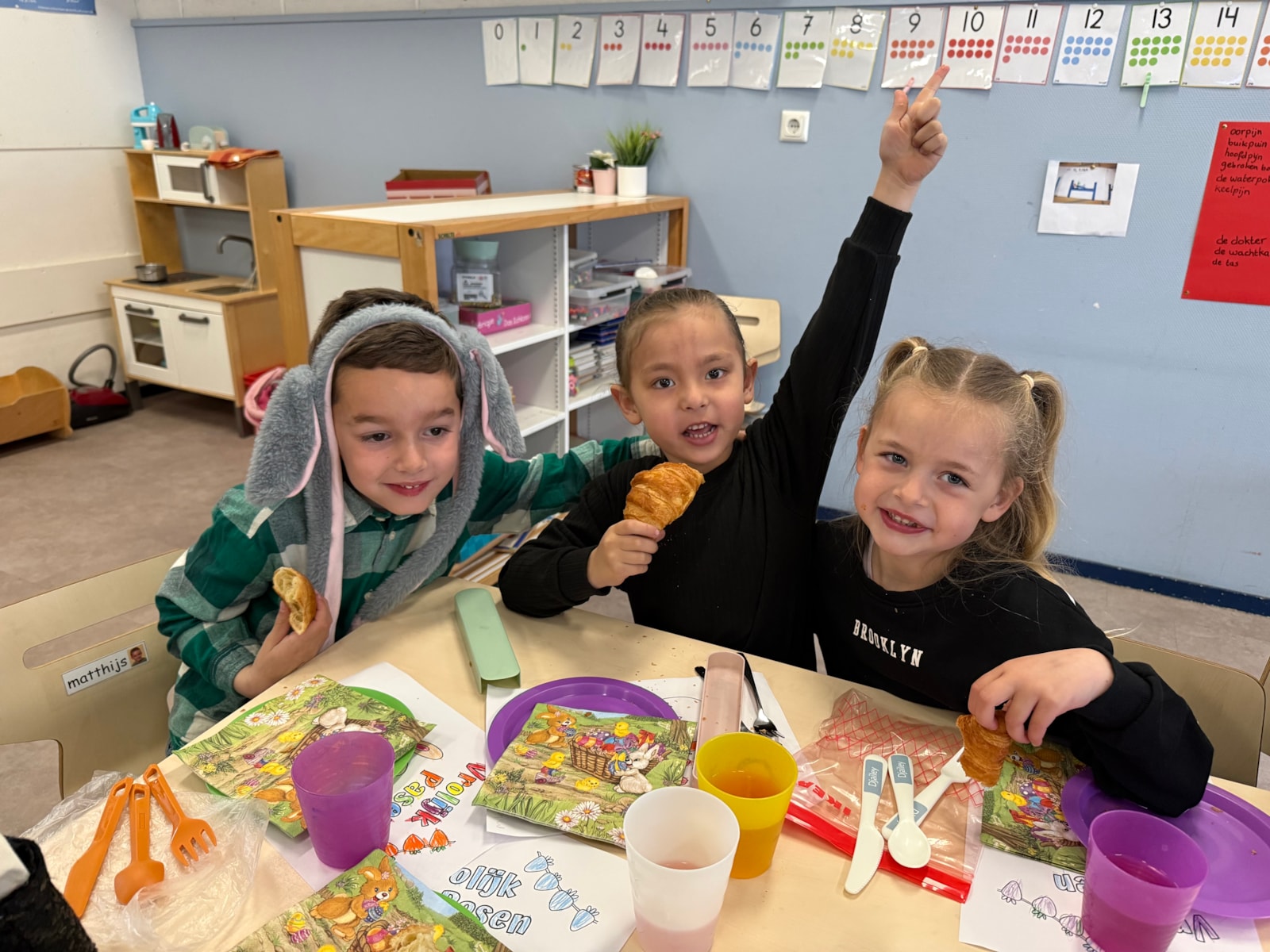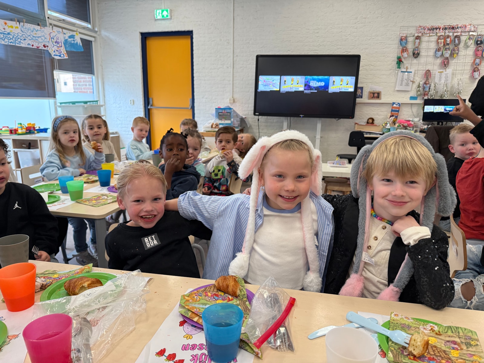 Vandaag hebben we een gezellige paasviering gehad op school. We begonnen de dag in de klas met een heerlijk paasontbijt. Daarna hebben we ons snel omgekleed en nog even gegymd.