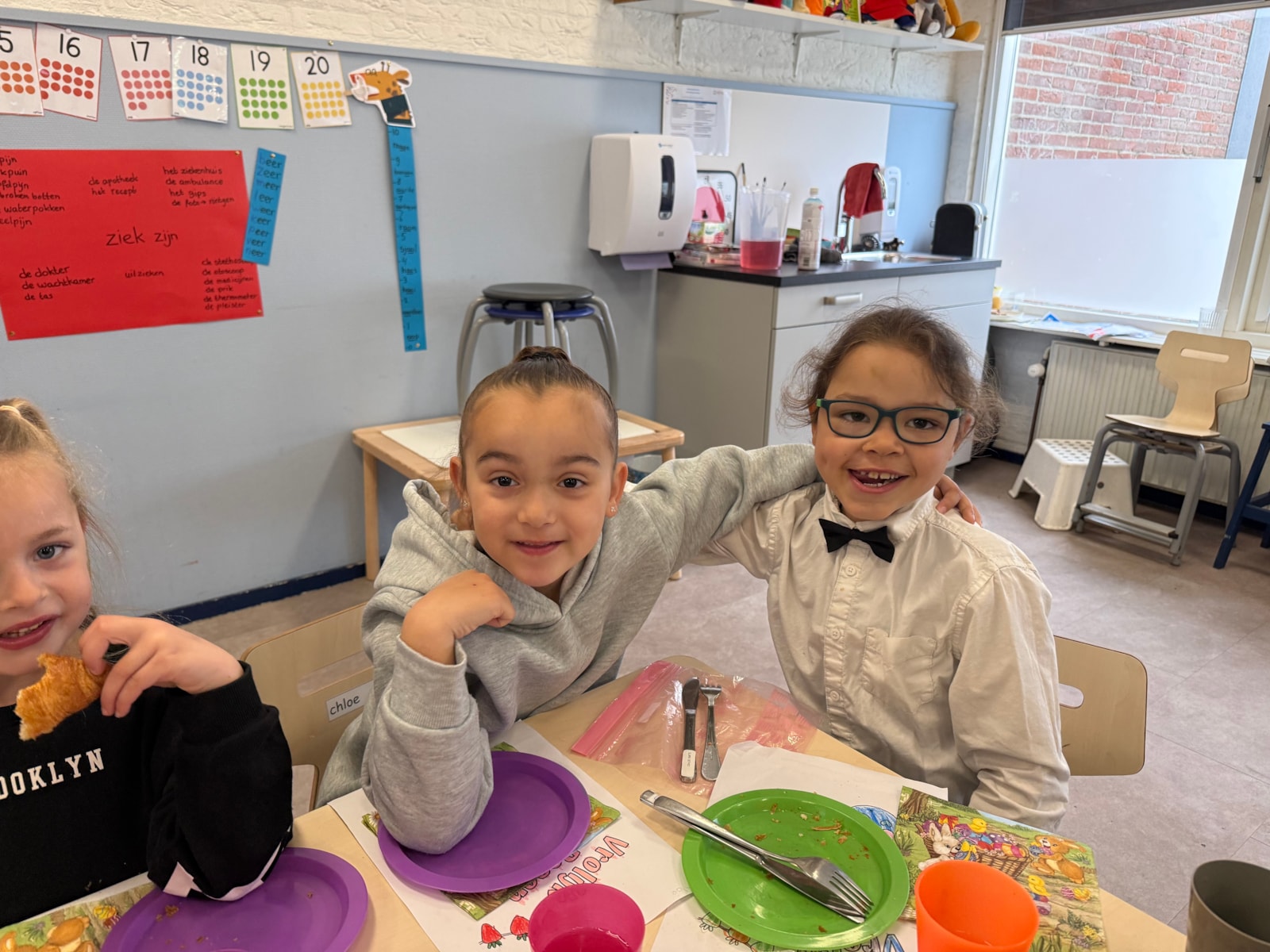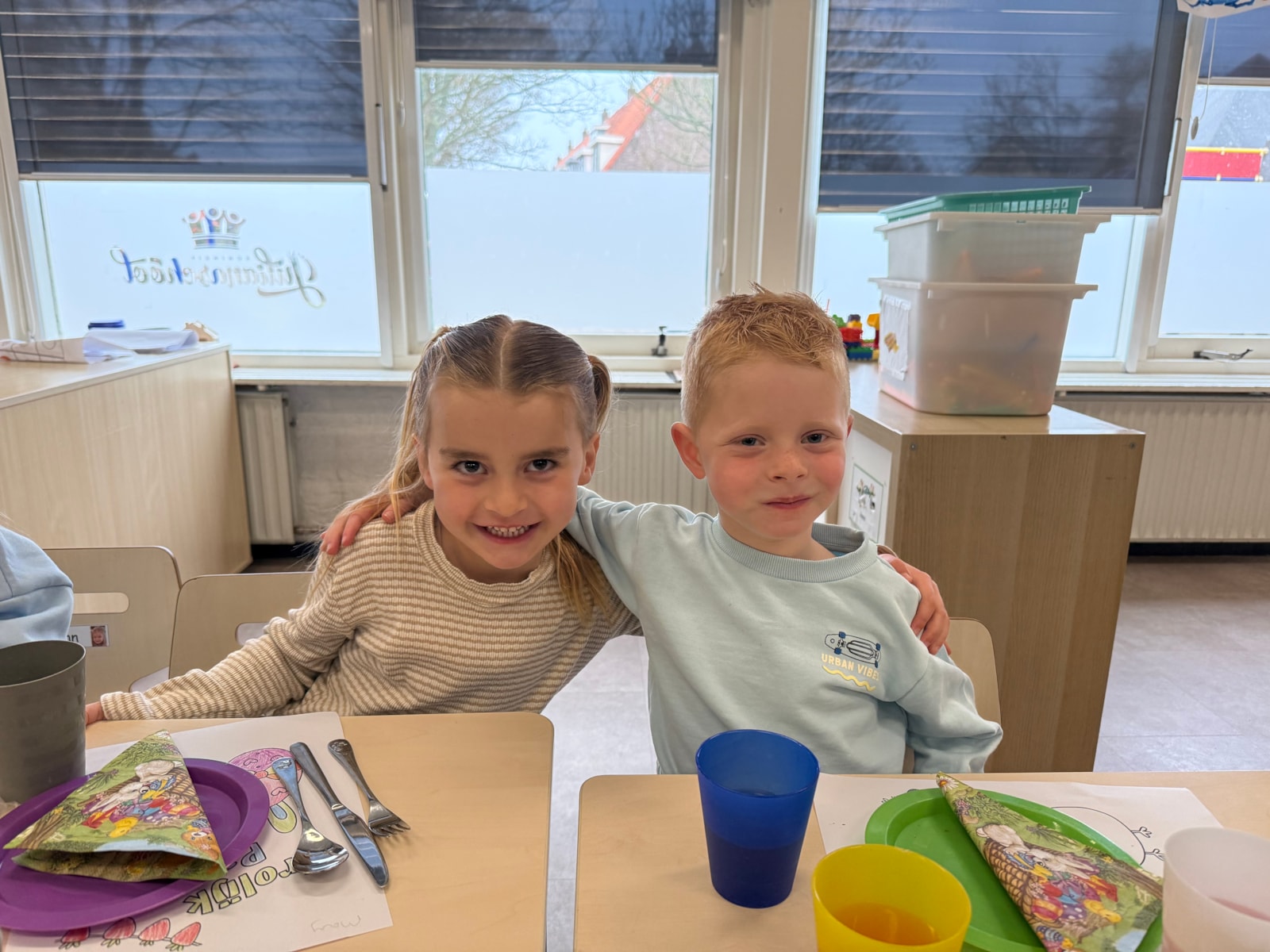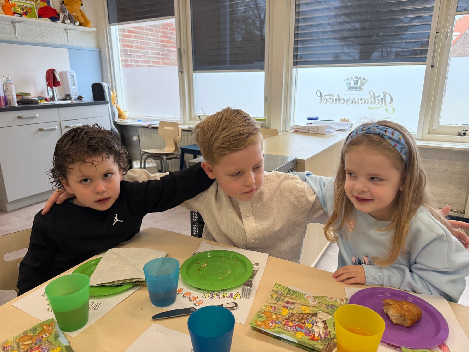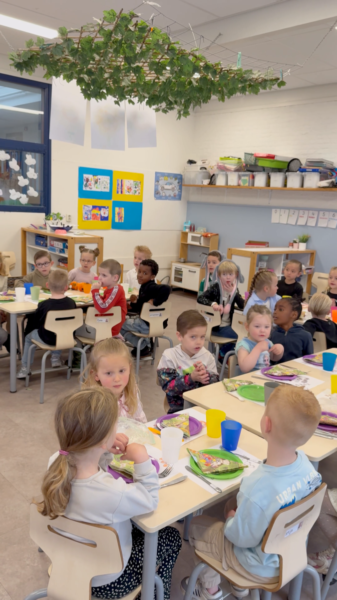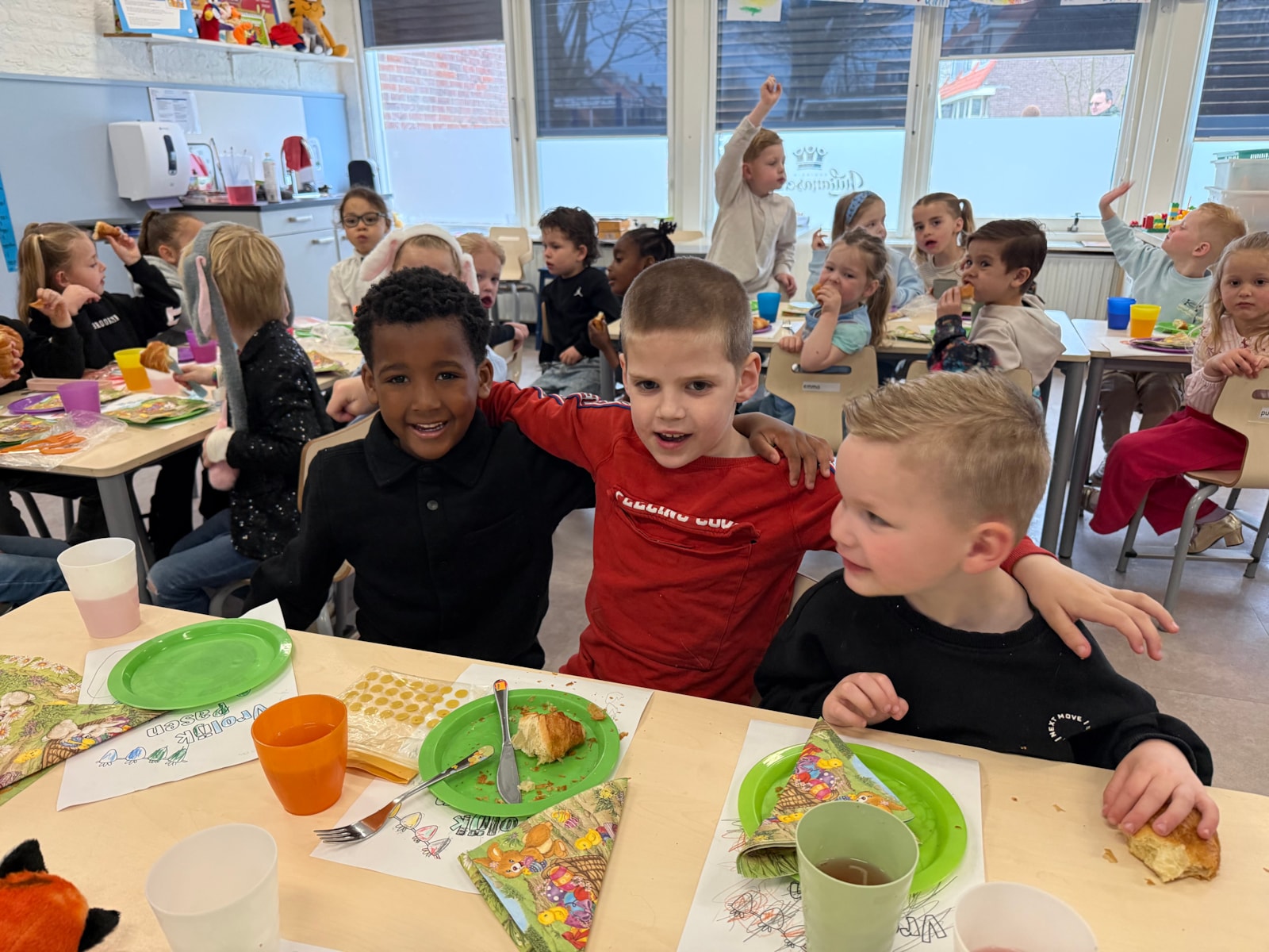 Vandaag hebben we een gezellige paasviering gehad op school. We begonnen de dag in de klas met een heerlijk paasontbijt. Daarna hebben we ons snel omgekleed en nog even gegymd.