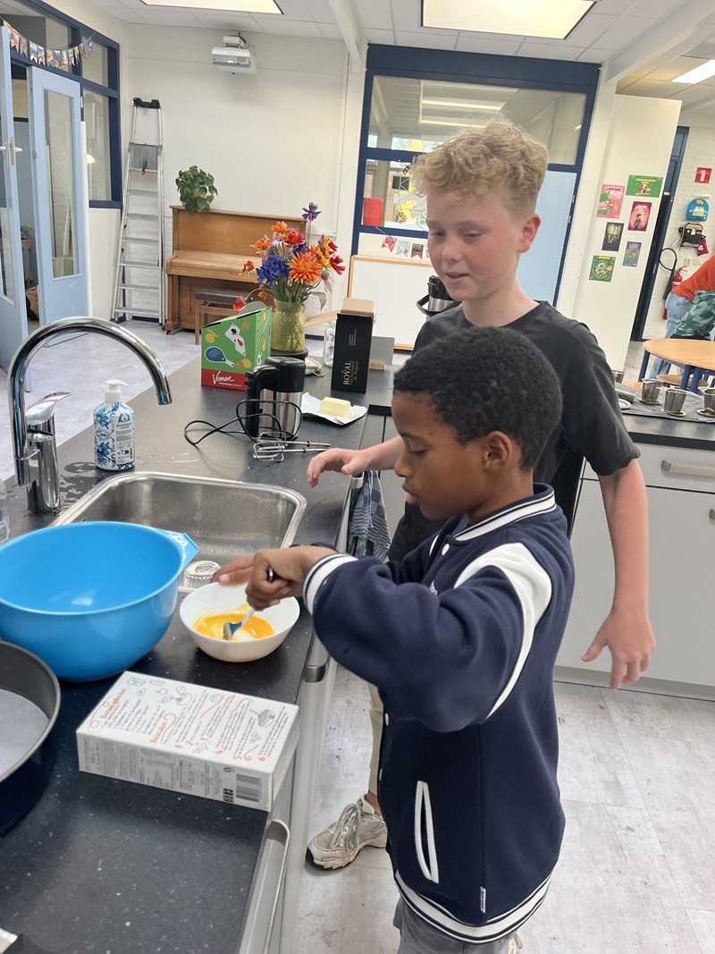 Vorige week mochten we in het Zuiderzeemuseum appels plukken. Vandaag hebben Tygo en Ray samen appeltaart gebakken voor de hele klas. We hebben er heerlijk van gesmuld met elkaar😍.